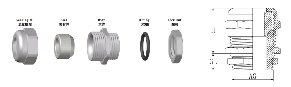 | M40X1.5 | PG36 | G1-1/4 | NPT1-1/4 | 22-32 | 11 | 35 | 44 |